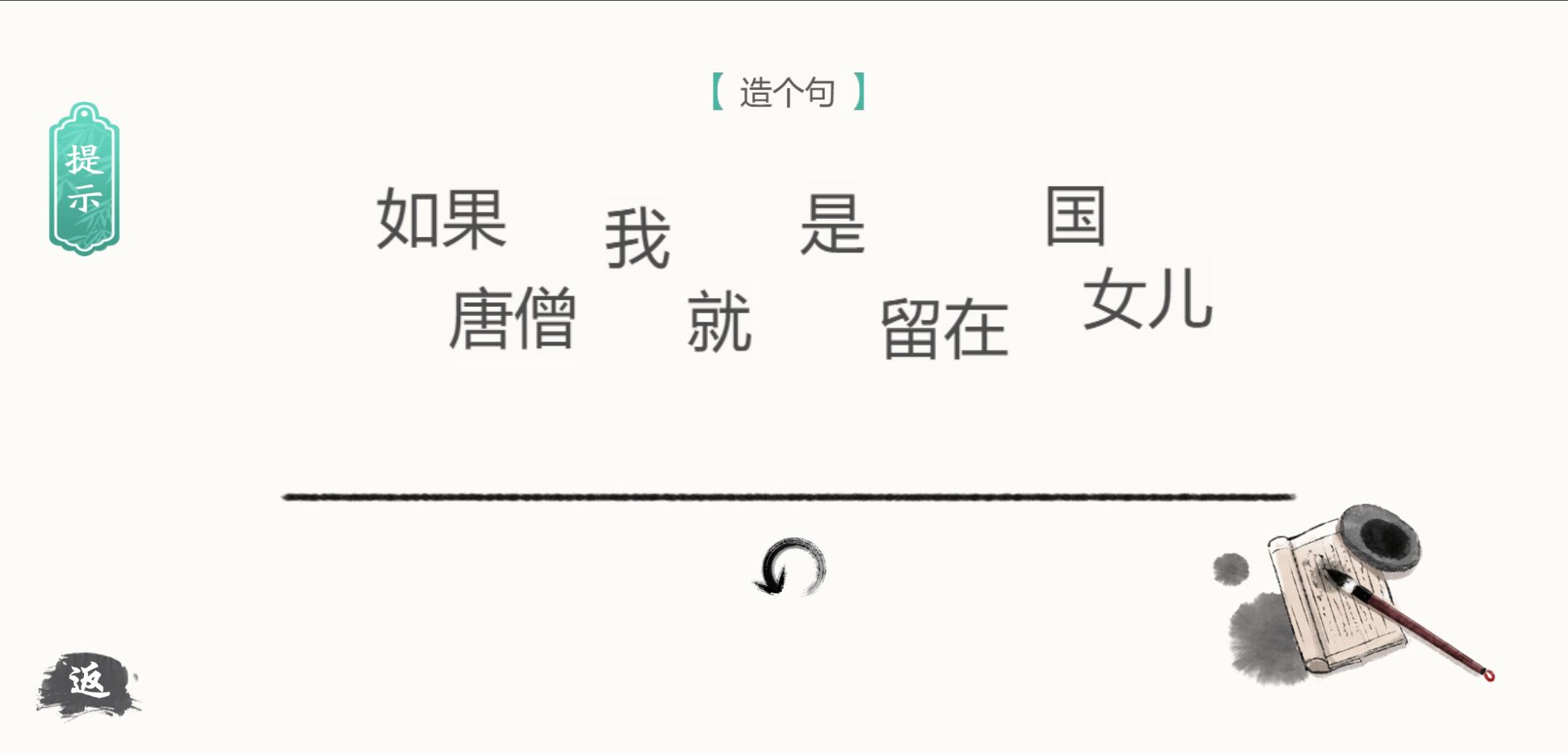 4、寻找最正确的过关方式,每一次冒险都充满乐趣,只需将正确的汉字组合成一句话即可过关;