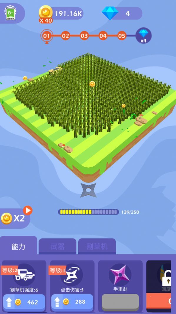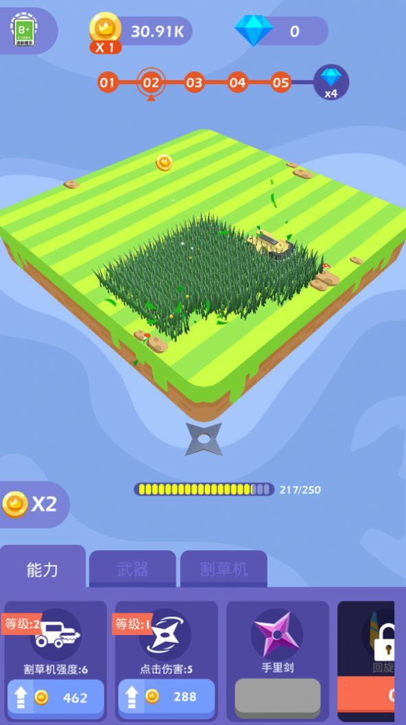 3、最强减压游戏拥有多种道具,玩家需要学会利用它们来提高割草速度和效率。