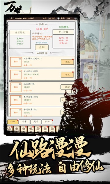 万世放置修仙是一款非常受欢迎的修仙游戏。这款游戏当中的每一关玩法都是非常精彩的,并且在这里面还可以挑战不同的模式,玩家可以选择单人挑战模式,也可以选择攻城模式,更好的帮助我们来达到修炼的效果,让玩家能够修仙成功。