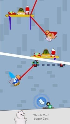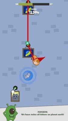 绳索英雄猫是一款卡通画风的横版休闲过关游戏。游戏围绕着绳索和猫而展开玩家在游戏中要去拯救被外星人绑架的猫咪,为你的小猫解锁更多的皮肤,游戏游戏玩法比较简单,就是通过思考,顺利的完成关卡的挑战。