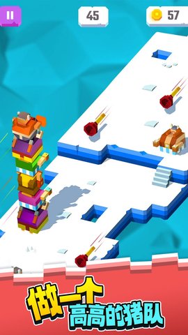 2、简单的视觉效果和可爱的小动物让你在挑战的路上与它们玩耍。