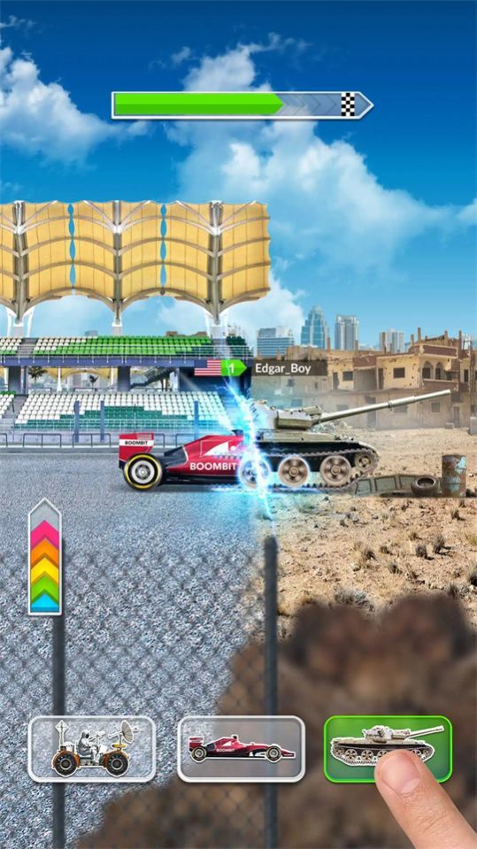 1、你与对手之间可不断的变化形态,各种载具都可切换来驾驶很考验你的手速。