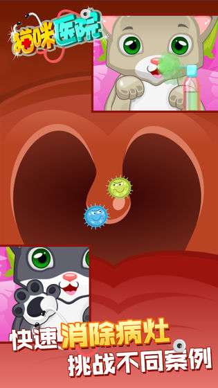 1.玩家在游戏中扮演猫医生,帮助生病的猫恢复健康,不同的小猫不同的病情;