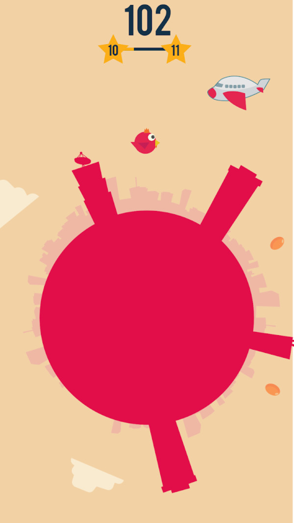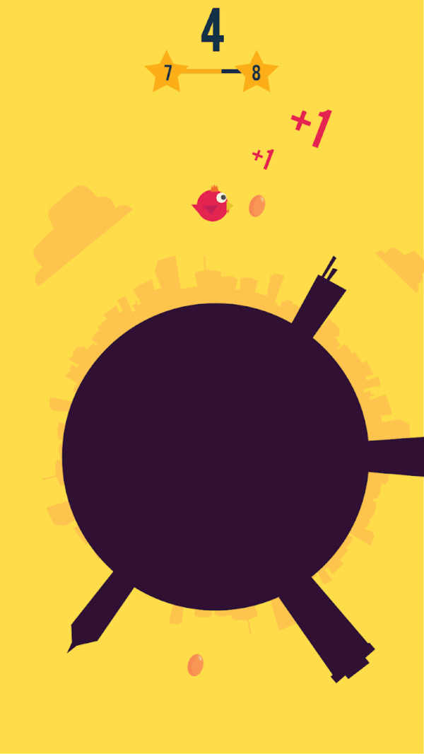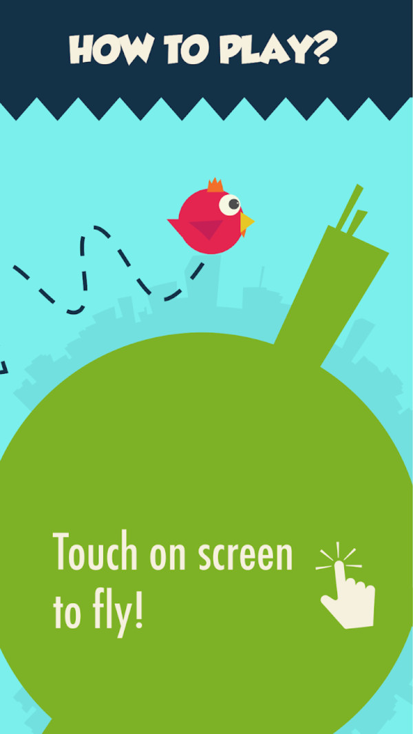 通过触摸屏幕来触控母鸡向前飞行,一旦停止操作,母鸡就会掉下来;