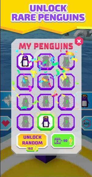 玩游戏,保存企鹅和解锁全新的冰山,以填充你的企鹅!每个新冰山都会给你一个装满金鱼的箱子。