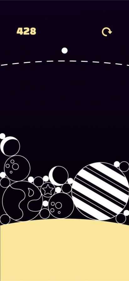 2、简单易玩,只需单击以控制星球的降落,你可以合并星球。