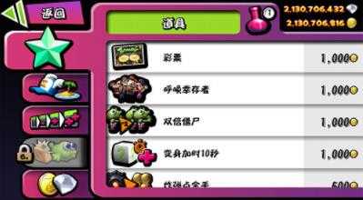 商店:当你结束游戏后会有一个界面,上面有很多格子。当格子里装满了脑子之后,系统就会送你一张刮刮卡!刮开之后是道具,装饰或是钱。钱可以用来升级道具(就上一条的那些道具),也可以拿来升级技能x,例如开场两个僵尸,走两步送你四个人头x之类的咳啊当然还可以买装饰,不过装饰是每一局随机分配/摊手。