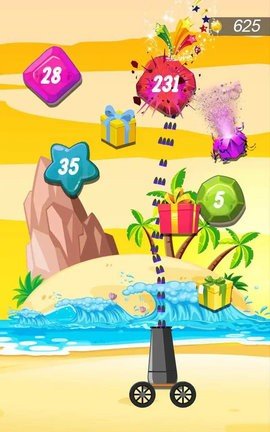 2.游戏中的道具也是几多的,操控好你的炮筒进行发射,可以借助他们帮助你爆破更大的球球。