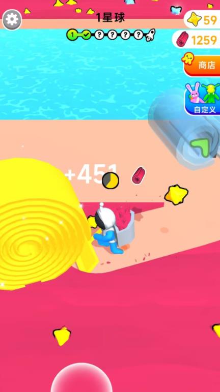 2、通过铲子,收集材料搭建粉色游乐园,让你的星球变得更加美丽,装扮更加独特;