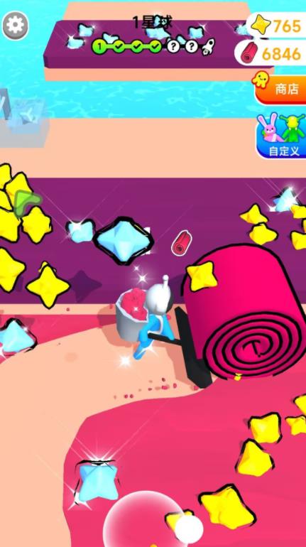 1、收集星星和钻石,将自己的工具升级,更快地收集材料,可以快速收集材料;