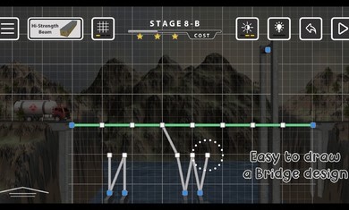 布里奇兹桥梁建设是一款建造模拟游戏,玩家需要扮演一名桥梁工程师,设计和建造各种复杂的桥梁,以连接两个地点。玩家需要考虑各种因素,如地形、河流、交通量等,来设计合适的桥梁,使其能够承受重量和风险,同时保证通行的顺畅和安全。游戏提供了多种不同的材料和工具,如钢材、混凝土、电缆等,玩家可以根据需要进行选择和组合。