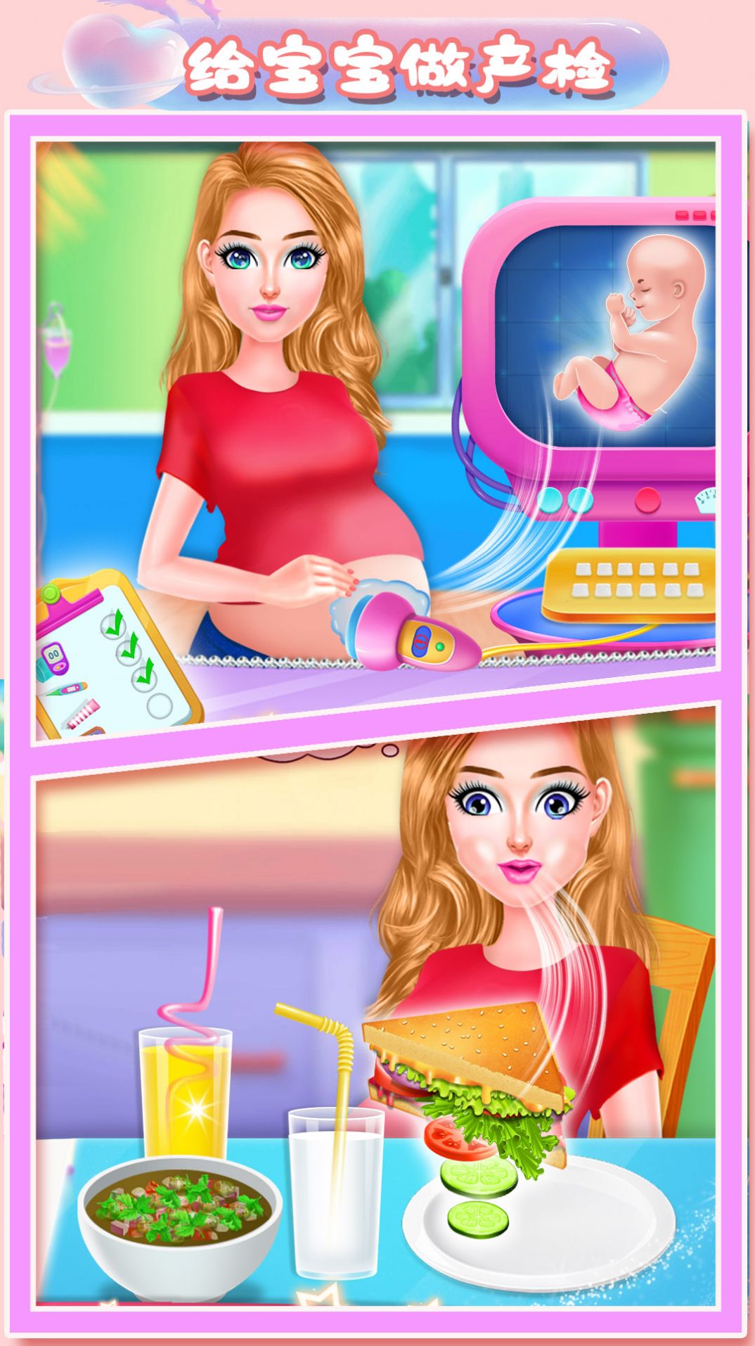 2、扮演一位母亲,学习怀孕期间的护理和保健知识,照顾自己和宝宝的健康;