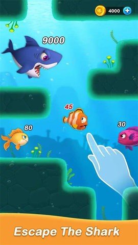 3、玩家控制一条小鱼,通过吃掉其他小鱼成长为一条大鱼。同时,玩家需要避免被比自己大的鱼吃掉。
