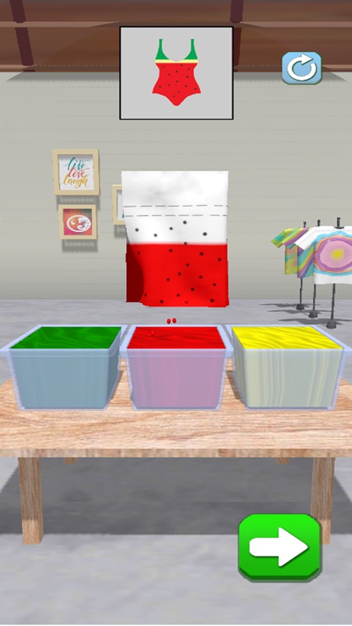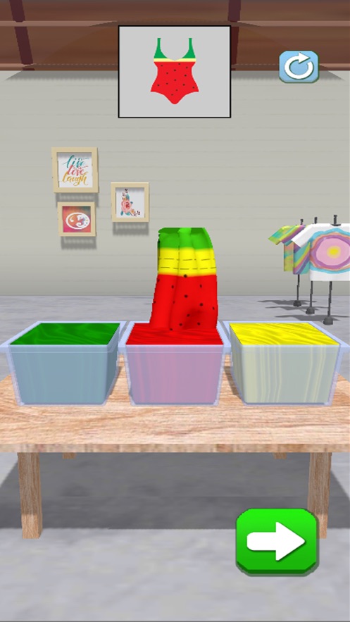 1、玩家需要像扎染技术一样,混合不同的颜色,染出各种精致的衣服;