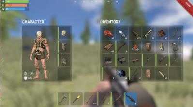 1、进入游戏后,我们是空背包状态,身上只有一个火把和石头,现在我们便开始了生存之旅。
