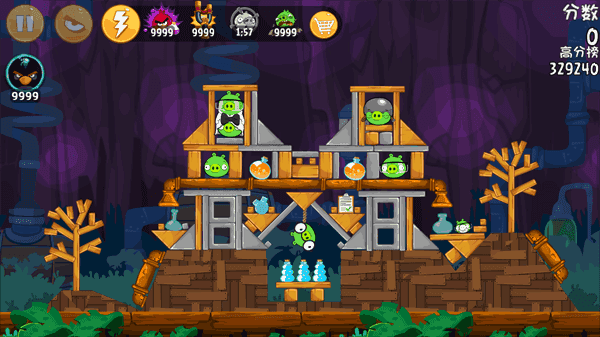 最后目标——砸到绿色的猪头,将猪头全部砸到就能过关;