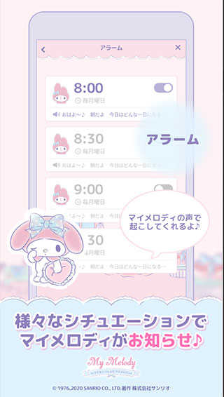 my melody官方正版又名我的美乐蒂,它是一款以人气兔子角色Melody为主题的文字对话类治愈游戏,游戏画风超级卡通少女心,玩家们将在这里和可爱的美乐蒂进行闲聊互动,一起分享日常生活中发生的趣事,而美乐蒂将会回复你专属甜蜜语音,非常的有趣。不仅如此,该游戏还支持日程安排、设置闹钟以及智能日历等超多的自定义设置功能,玩家可以用可爱的日历管理自己的活动时间表,设定闹钟,美乐蒂每天叫你起床,还可以在你无聊的时候和它玩玩游戏,打发自己的休闲时光,玩法非常丰富!同时,你也可以将美乐蒂开启悬浮功能,这样一来在使用其他的手机软件的同时,也不耽误自己和美乐蒂进行互动了,十分的方便。而my melody中文版还支持中文显示,玩家除了能够装扮超萌的桌面宠物,还可以更好的与之进行游戏对话,仅需在设置内切换中文,就可以体验无障碍游戏,尽情享受melody为自己所带来的温馨时光!感兴趣的小伙伴快来下载体验吧!