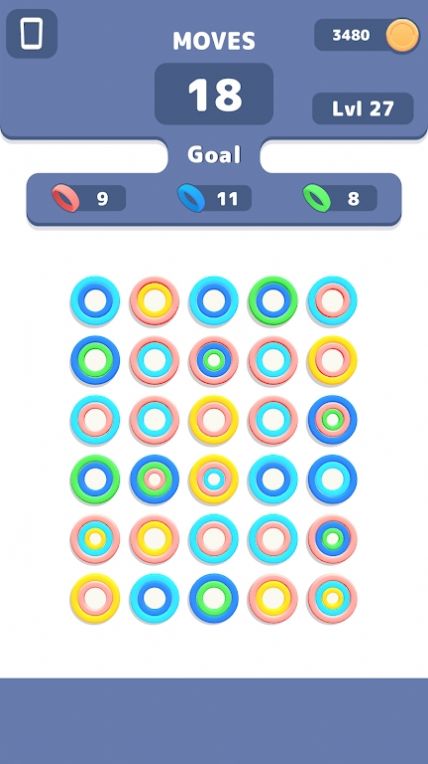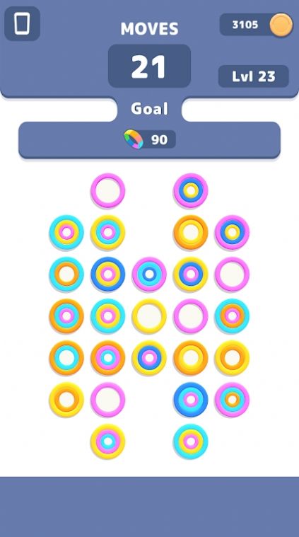 1、玩家需要通过将三个或多个相同颜色的圆圈连接在一起来消除它们。