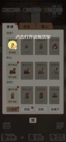 3.随着金币的积累,您还可以扩大业务规模,购买更多架子来展示您的商品。