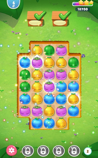 1、简单易懂的规则。游戏的规则非常简单,玩家只需要通过手指在屏幕上滑动,将同样颜色的水果连接在一起,就可以消除这些水果,并获得分数。