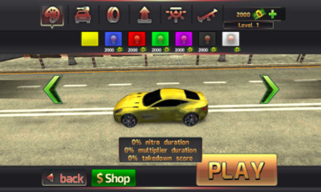 2.速度快才能飞跃更多的障碍,所有你必须不断升级自己的汽车,提高汽车等级来强化自己的速度属性;
