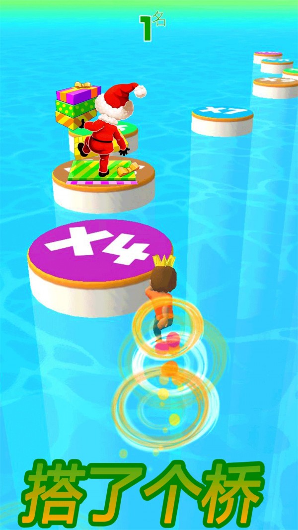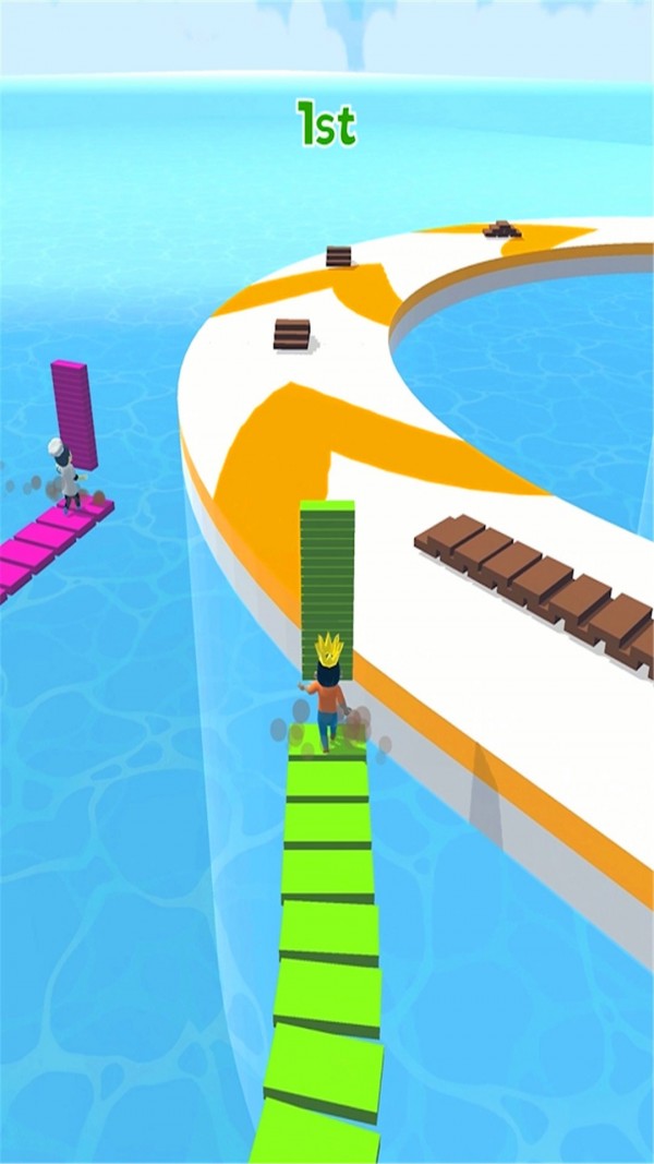 1、在游戏中你可以通过收集众多中积木进搭桥玩法,积木搭桥3D游戏内可以通过操控游戏角色在关卡中和其他的角色进行对战
