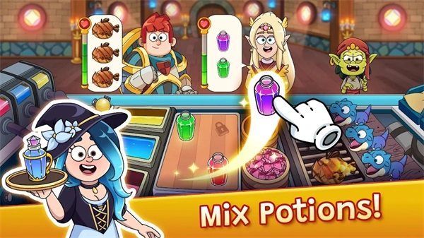 1、戏玩法就是把材料放入锅中,炼成药水,升级素材制作更棒的药水