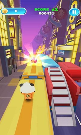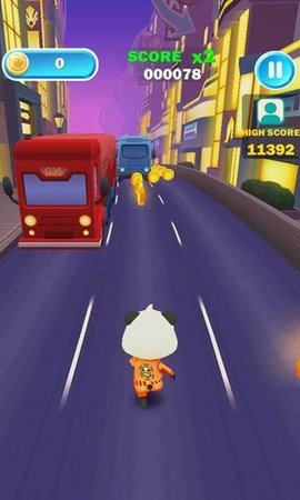 1、游戏采用经典的跑酷模式,玩家只需要向上滑动屏幕让熊猫宝宝跳跃,向下滑动屏幕让熊猫宝宝滑行;