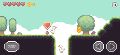 1、玩家需要控制主角萌鹅通过各种障碍,不断前进。