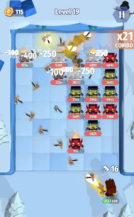 3、每个关卡都会出现大量敌人,自由调整自己的射击角度,让斧头准确命中所有敌人。