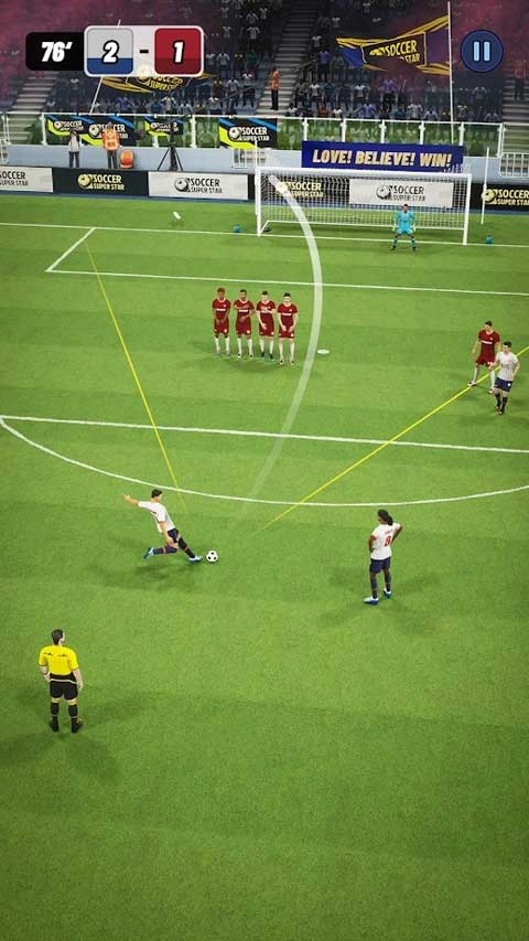 1、真实的足球竞技挑战玩法,3D场景和画面让整个体验更加的畅快尽心;