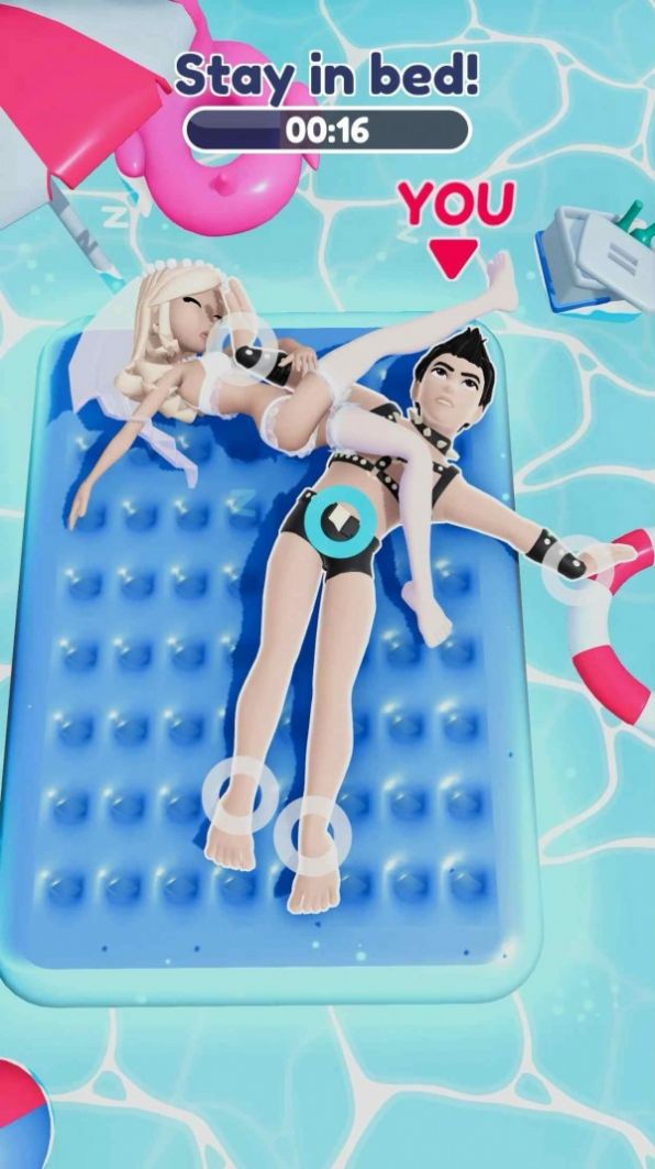 抢夺床位这款游戏主要是休闲闯关的类型,游戏中的目标只有一个,就是将对手从床上挤下去,游戏的背景都是非常多的,在不同的背景下挑战,体验也都是不同的,游戏的操作非常的简单,玩家只要不断的去点击扭动角色的躯干和四肢,不断的进行蠕动,只要成功的将对手挤下去,就算是完成任务。