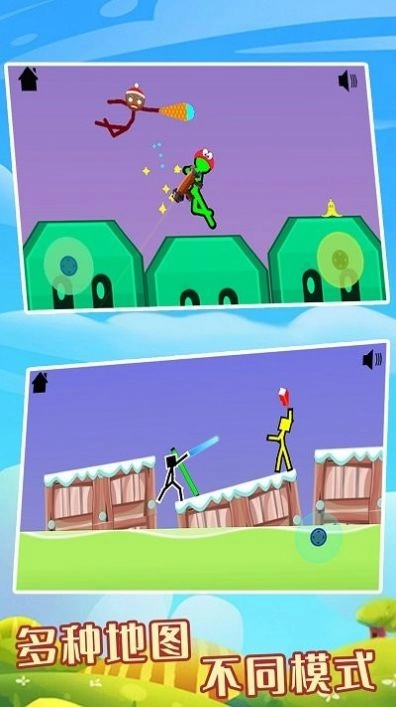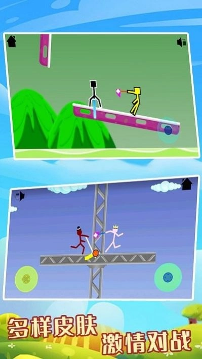 3、采用与众不同的Q版形象,在火柴人互殴的同时,动作技能和场景设计也赋予了游戏精彩的视觉效果。
