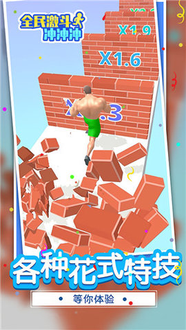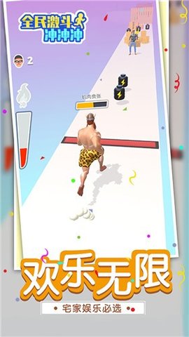 全民激斗冲冲冲是一款以竞速为主题的动作游戏,玩家需要扮演一个快速奔跑的角色,在不同的关卡中闯关,获取最高的得分和排名。同时还可以通过收集金币和道具来获得额外的加速和特殊技能。玩家需要根据实际情况选择最合适的角色和道具,来应对各种挑战和障碍。