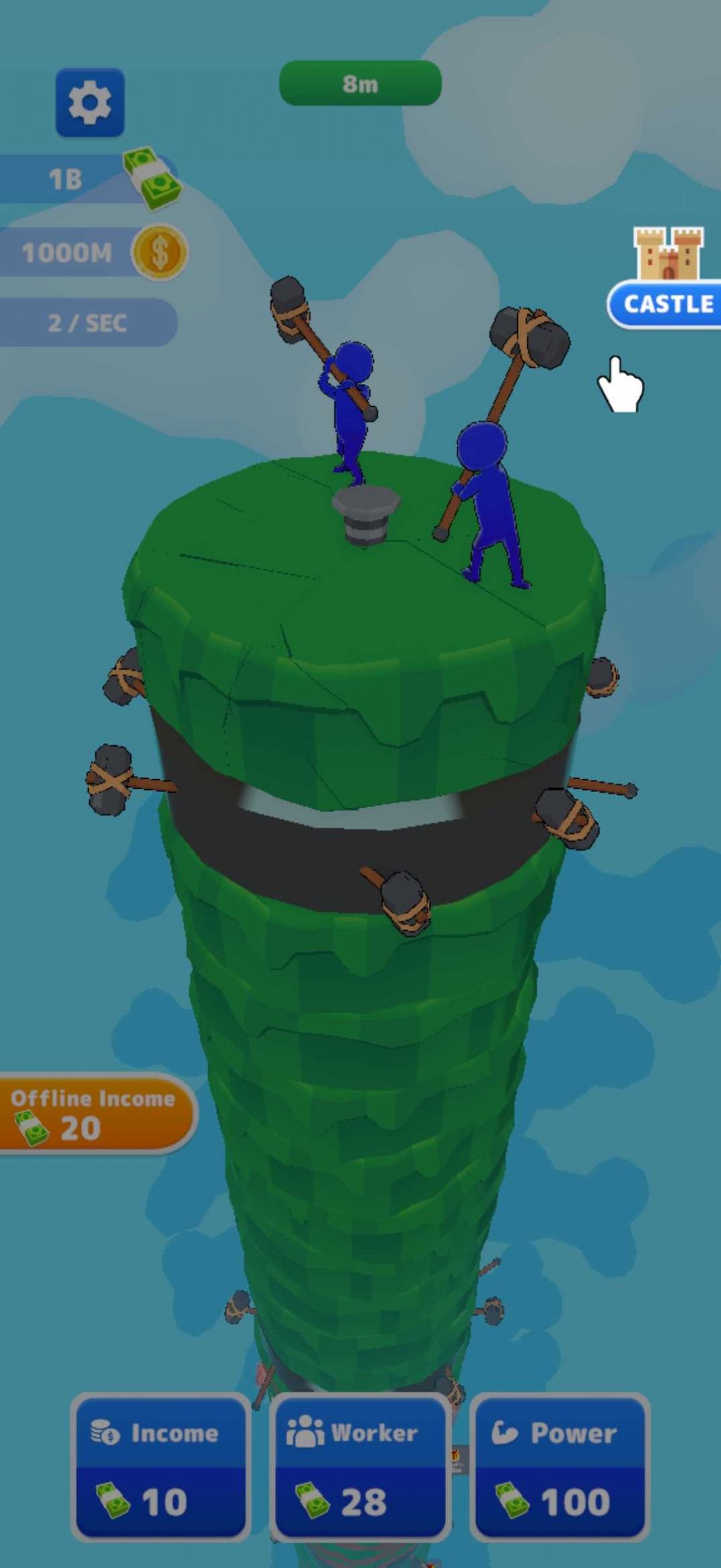 击败铁锤粉碎游戏越多的人你的锤子和身体都会变得越来越大,