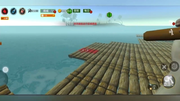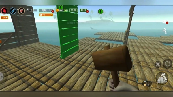 3、收集树木,建造新建筑,升级您的玩家和木筏。