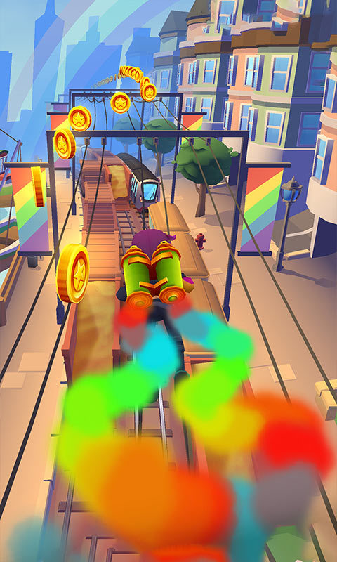 地铁跑酷旧金山内购版是一个可以免费内购的地铁跑酷游戏,还是采用旧金山城市地图作为背景,并且也能为玩家解锁限定角色夜莺哦。这款地铁跑酷旧金山内购版游戏将会展现西式城市的卡通风采,强力角色助力你的跑酷闯关挑战,经典的音乐节奏,简单的操作方式,让你的游戏过程拥有无限精彩的体验。