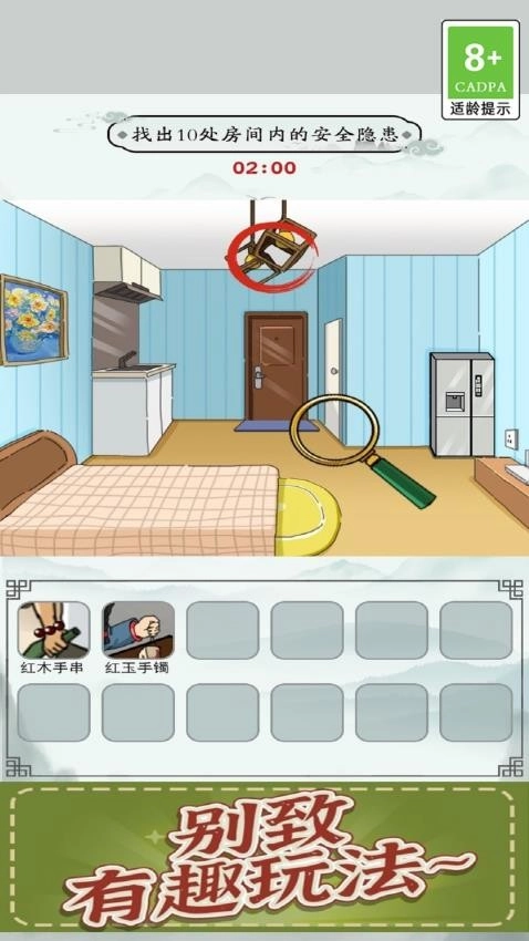 观察力大挑战一款考验玩家观察力和反应速度的益智类游戏。在游戏中,玩家需要在限定时间内,在一张画面中找出指定的物品或进行其他相关的挑战。每个场景都设计了不同的挑战任务。玩家需要仔细观察画面中的细节,找出目标物品或完成指定的任务,喜欢的小伙伴来试试看吧。