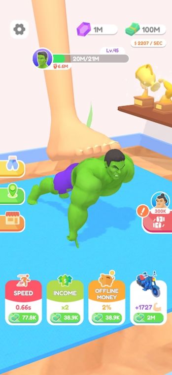 2、完成后获得奖金。拥有足够的奖金后就可以解锁新的健身房,尽情挑战。