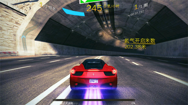比赛一开始,玩家一般的都是在队伍的最后,或许很多人问为什么一开始就用呢?小编的意见是,比赛一开始车辆速度都很慢,玩家使用氮气(完成“完美氮气”,获得三级氮气)将速度短时间内提到最高,这时,玩家近乎追上别人的车辆,撞毁敌人可以获得更多氮气。