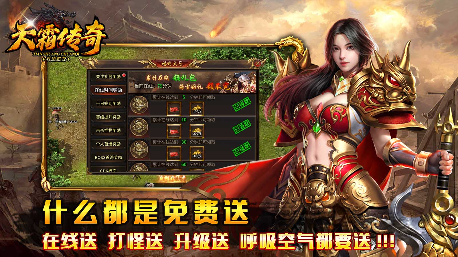 2.充值是很容易得到的,不管是上线,打怪,还是在线都会送充值。