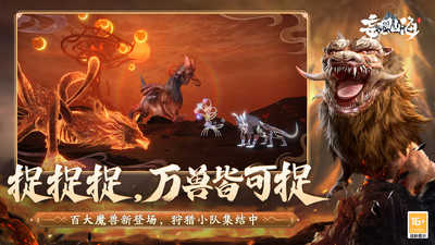2、山海经中的各种奇珍异兽,都在这个辽阔的世界中游荡生存着,有着自己独特的生态圈,玩家可以捕获几乎全部的山海珍兽,但是这不是一件容易的事,准备好充足的物品、装备以及捕获弹再去挑战吧,相信我,这些花费都是值得的,它们还能帮你上天入海,更轻松地探索整个世界。