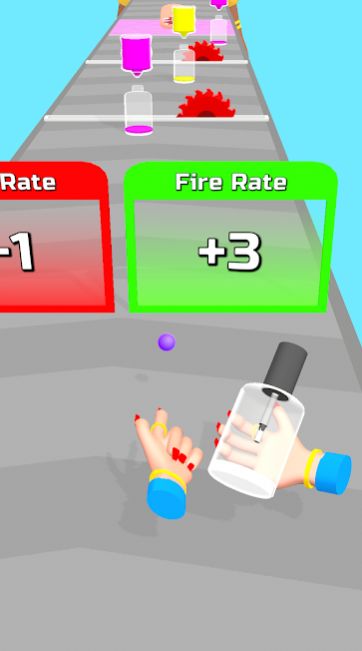 3、这款游戏中的指甲有各种颜色可以选择,还能在指甲油的刷子下面通过,刷上一层彩色。