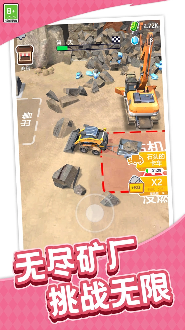 掘金猎手是一款冒险挖矿类游戏,玩家可以扮演一位探险家,深入地下挖掘宝藏和珍稀资源。游戏的背景设定在一个神秘的地下世界,充满了未知的危险和机遇。你还要小心避开地下生物和陷阱,确保自己的安全,你可以将这些资源用于交易、合成新的装备或升级自己的技能,喜欢的小伙伴来试试看吧。