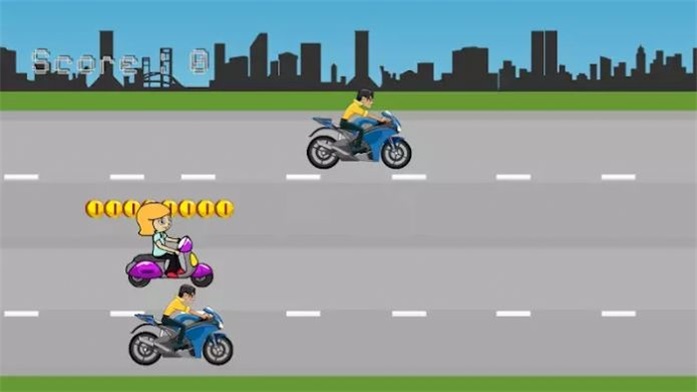 1)萌萌可爱的女孩驾驶摩托车,充满童趣的卡通风格让人忍不住爱上这款游戏。