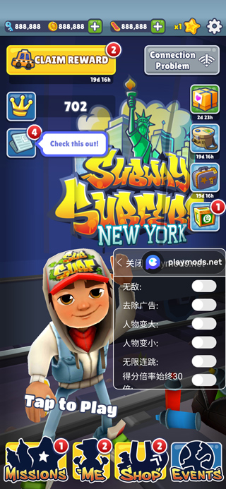 地铁跑酷中有磁铁、飞行背包、双倍得分、运动鞋、滑板等道具,其中滑板需要双击屏幕激活,可在商店中购买不同的样式,单次增加金币倍数及路程加速为单次使用,宝箱可在游戏中获得或在商店购买,其余道具则需在游戏过程中获得,并可在游戏内的商店中升级以延长有效时间。