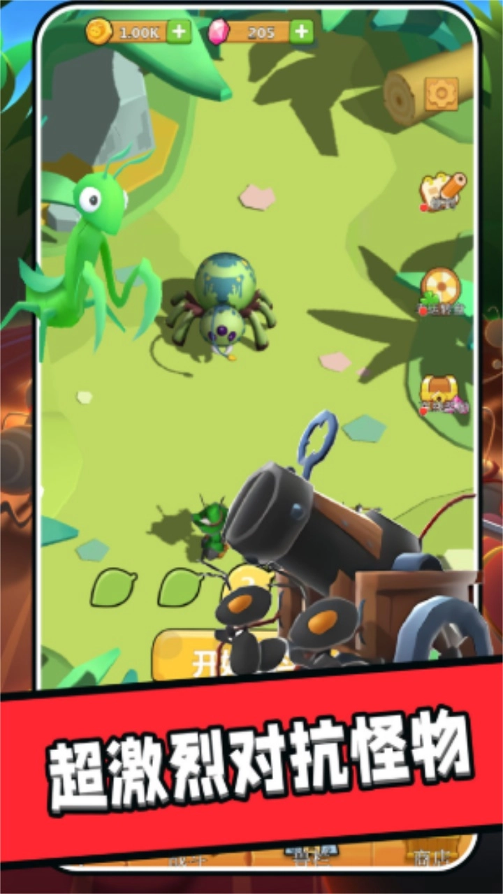 2、进入大自然世界探索更多地图,随时都有可能遇到新的敌人,带领所有蚂蚁一起战斗。
