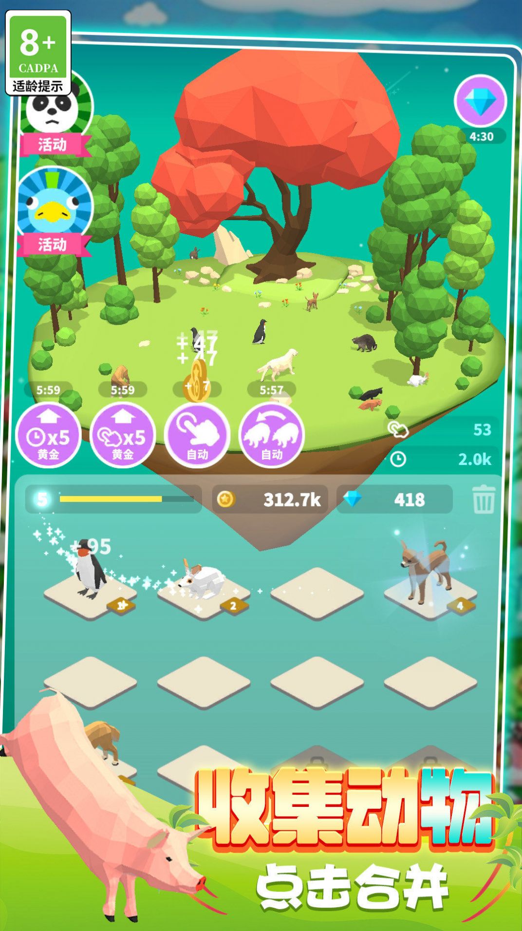 1、玩家需要通过合成动物,不断提升自身实力,挑战更高难度。