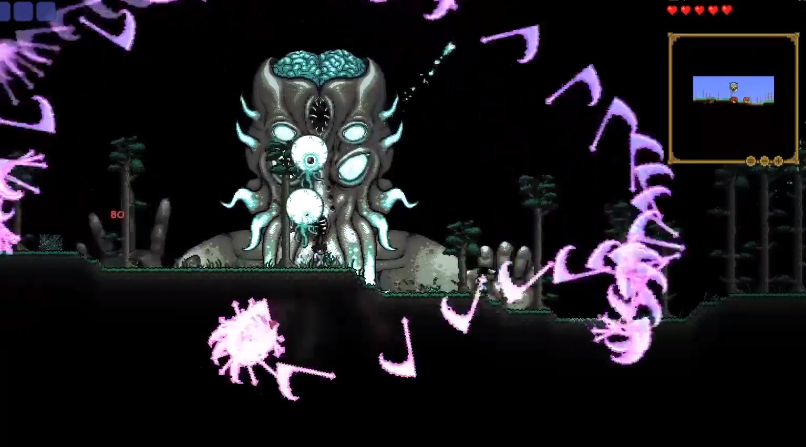 可以把金/铂金弓换成暗影/血腥弓,饰品方面必带克眼掉落的克盾(专家模式专属),如果这个时候没有陨石套,可以用史莱姆王的忍者套。这个时期可以搜集一些落星来制作小丑箭,以便对付后面的克脑/世吞。