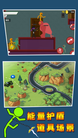 2、游戏以火柴人为主角形象,在简约可爱的画面下,打造了一个充满乐趣的游戏世界。